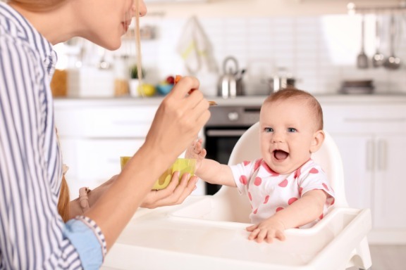 Apariția dinților la bebeluși coincide deseori cu diversificarea alimentației